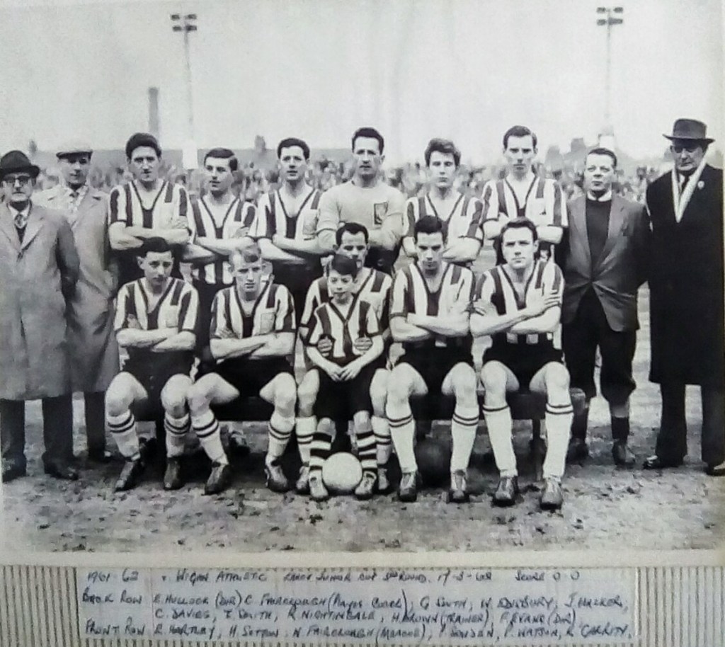 So, back to our original photograph, taken for the Chorley Guardian in 1960. The two players were, as was my great grandfather, well respected Chorley stalwarts. Both Peter Dunn and Ted Hartley were awarded benefits during that season, hence their appearance on the photo. Both joined the club in the mid 1950’s and were regular members of an impressive Chorley side until the early 1960’s. Peter Dunn was the first to leave at the end of the 1960/61 season. The benefit raised £150 each for them, nothing by today’s standards, but back then some 60 years ago they would have been happy with the esteem in which they were held at the club. Life moves on and teams change, this photo represents a full circle in the life of the club and now it is almost frightening to reflect that both these players in the photo would be older than Johnny Parker was when it was taken.