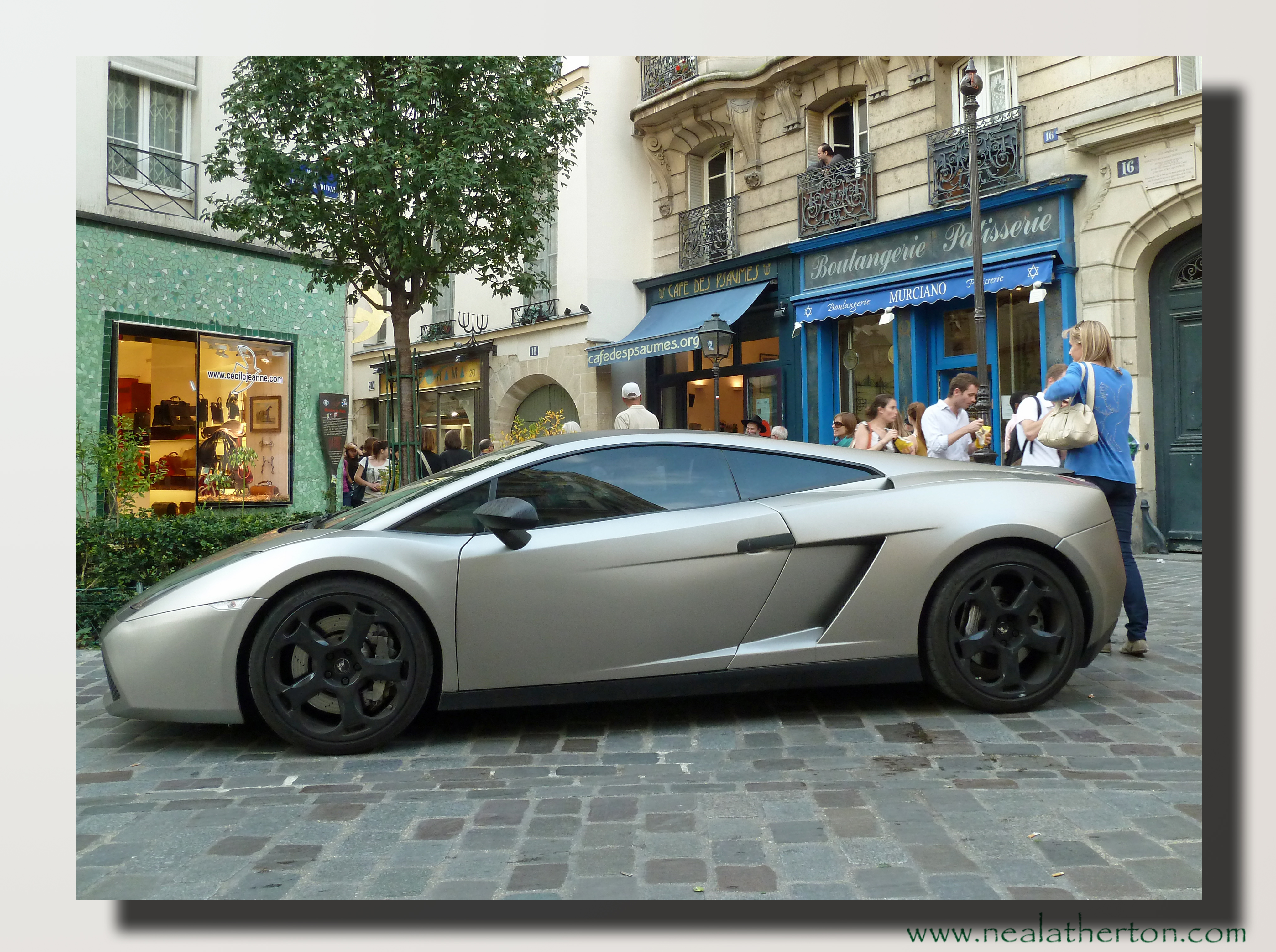 Quite an arrival at a cafe in the Marais district of Paris