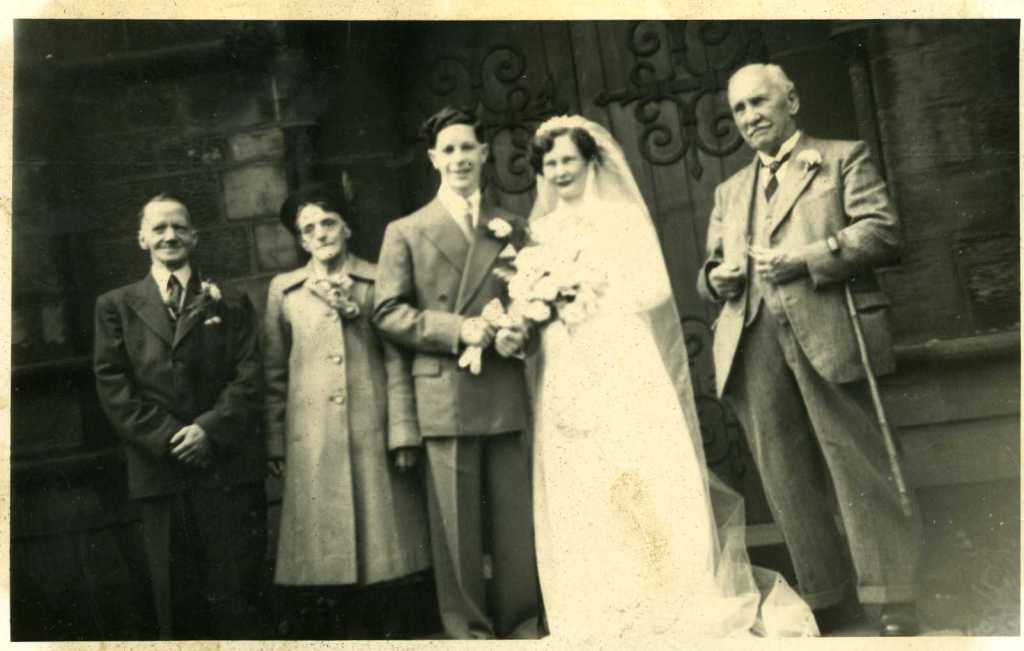 This is quite a photograph in the context of my family history research. It is also notable this week in that the central characters, my parents, celebrated their 67th wedding anniversary. In the current covid-19 situation it was not possible to travel north to see them but for them this was another happy milestone in their long marriage since the above photo was taken. I have not of course researched their personal history. One absolute rule I have taken in conducting my family history studies is that nothing I find should ever impact adversely on or indeed change perception for any living member of the family. I can be comfortable in offering a few thoughts on the others and how they are important links for me.