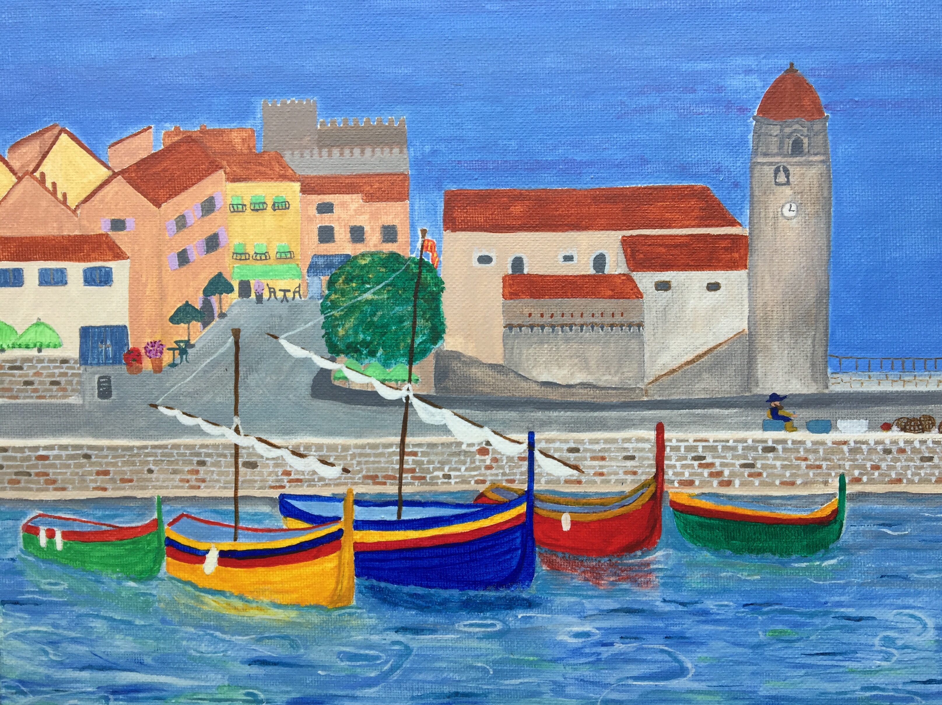 Collioure France- a lovely watercolour scene of a still quiet evening in France – this is our most favourite place in France and not to be missed