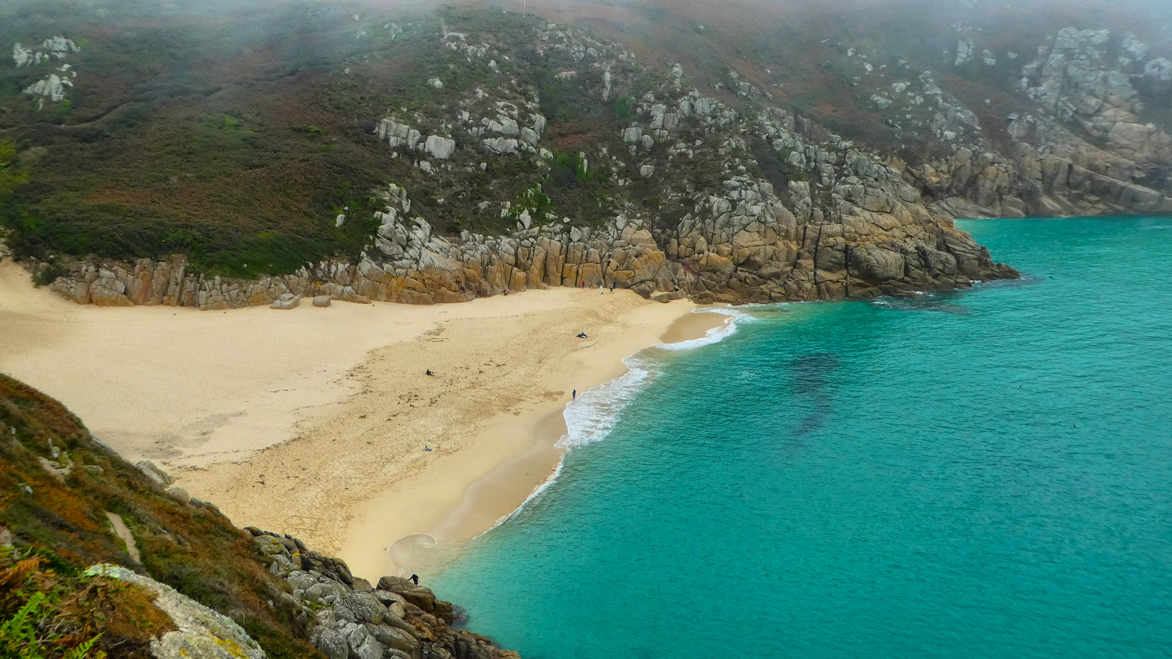 Porthcurno beach Cornwall England – a view from the Minack Theatre