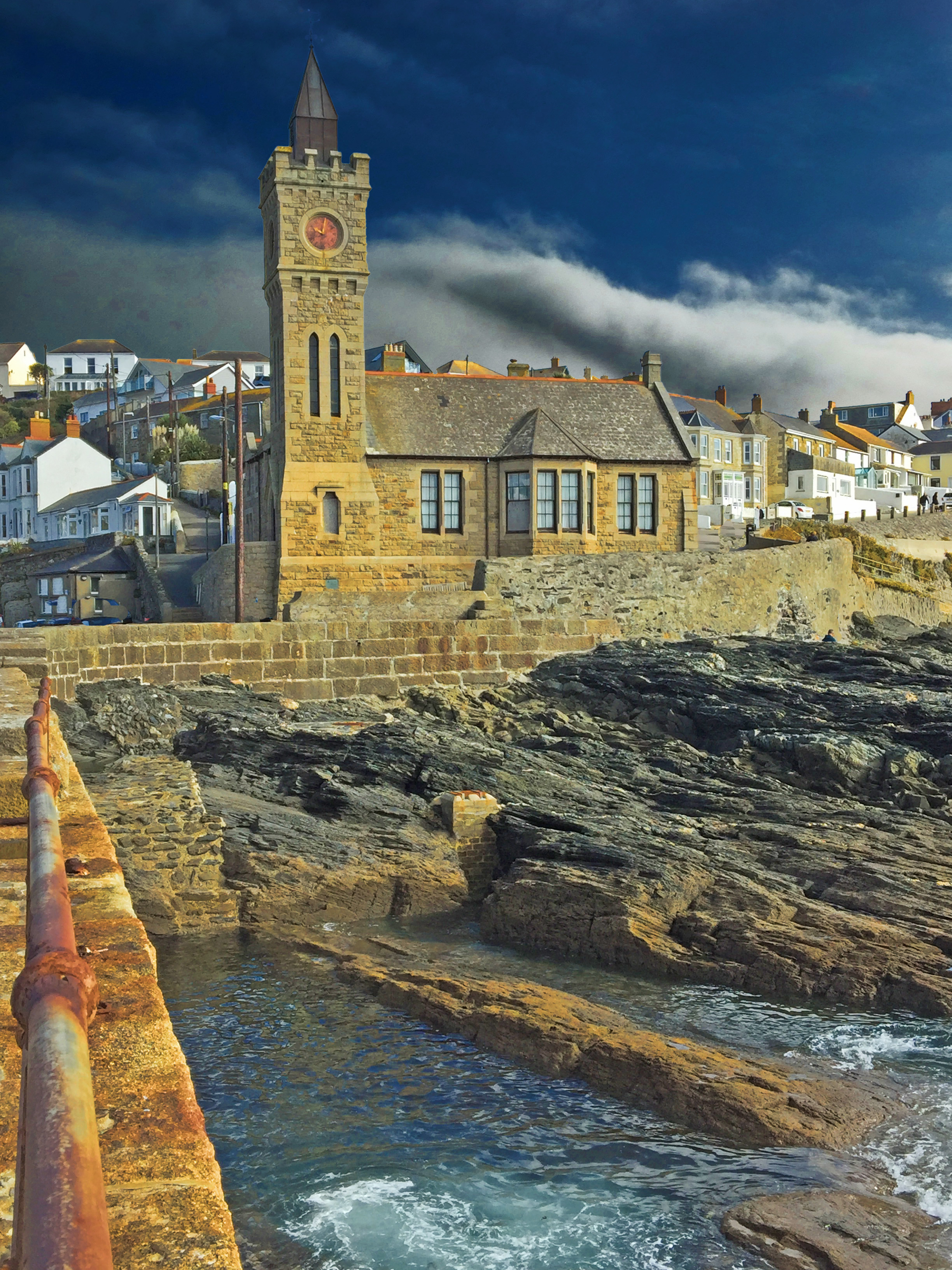 Porthleven Clock Tower on a Changeable Autumn Day